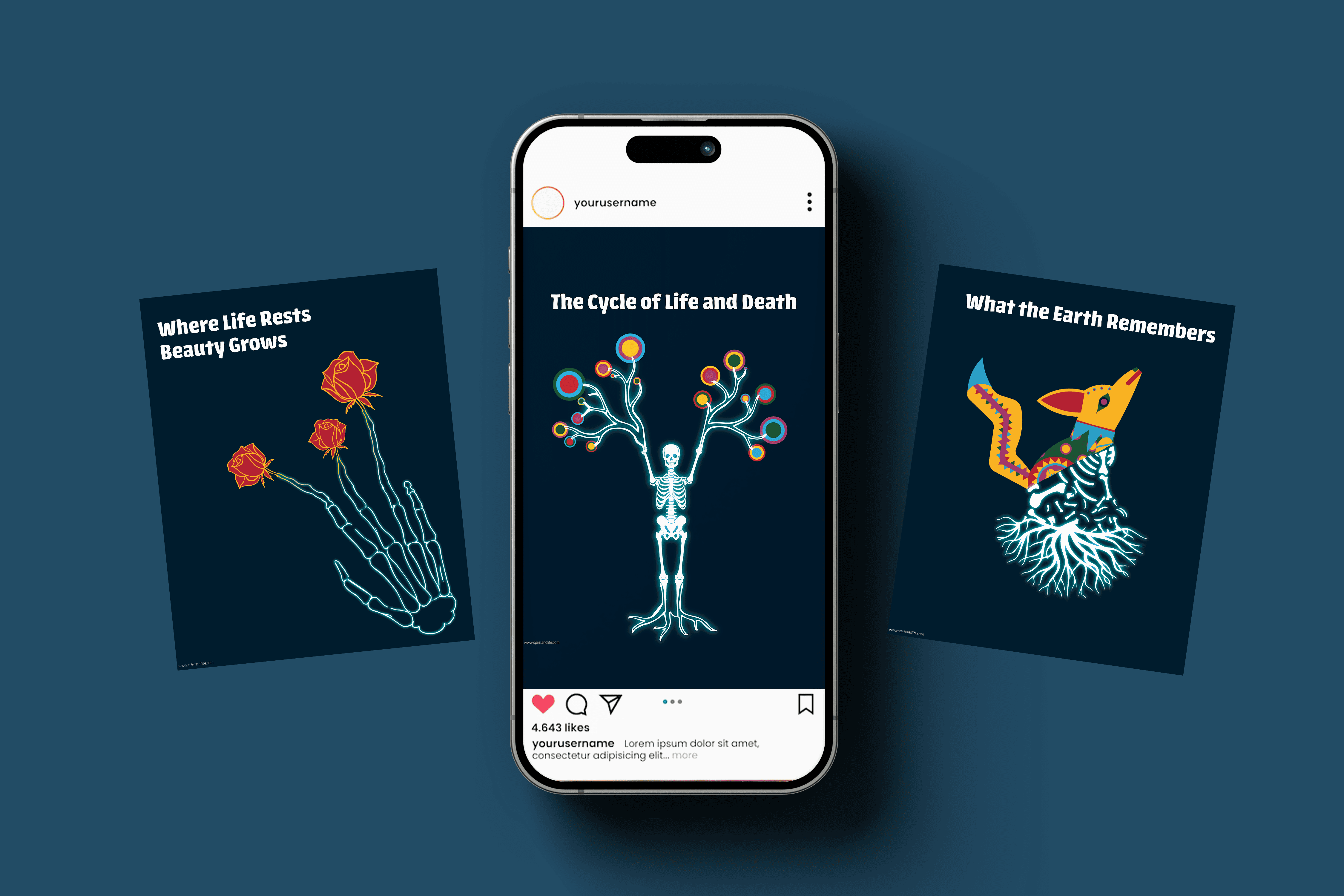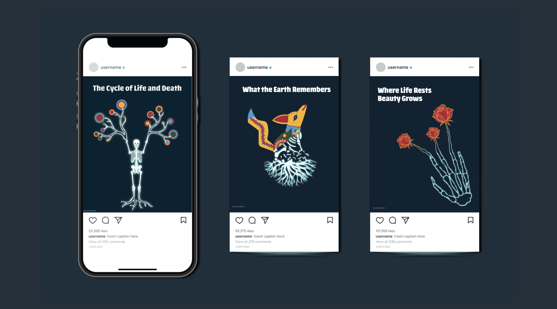 This is a series of Instagram like illustrations exploring the balance between life and death. Each image carries a consistent symbolic meaning while staying playful in form. The project focuses on visual storytelling, using color, composition, and illustration to reflect contrast, transition, and growth.
